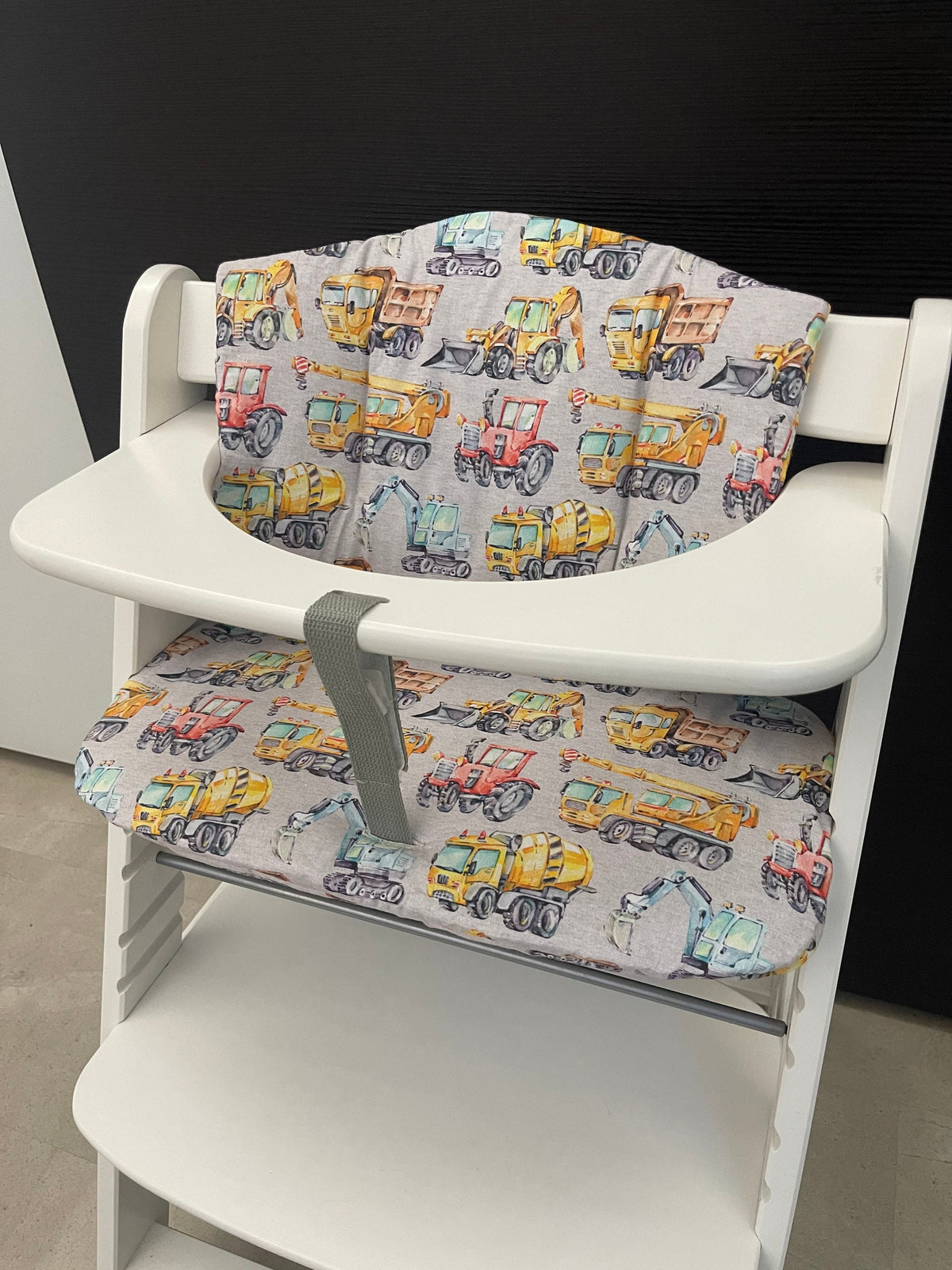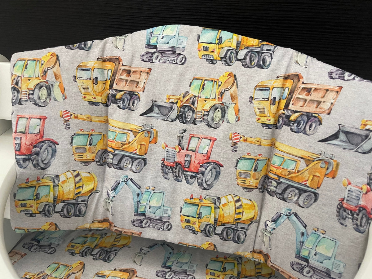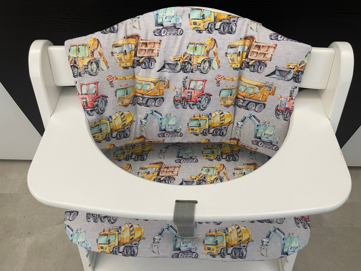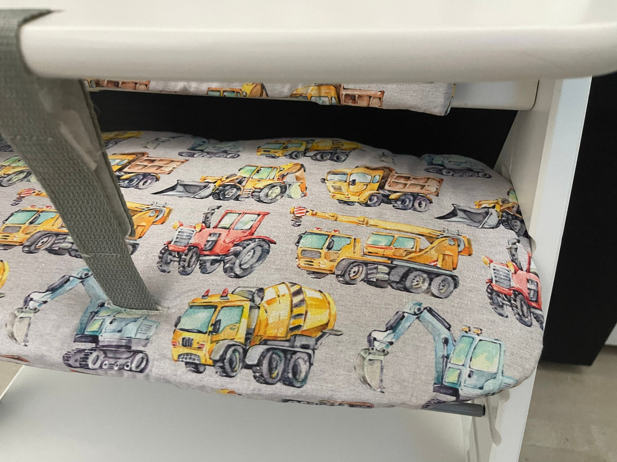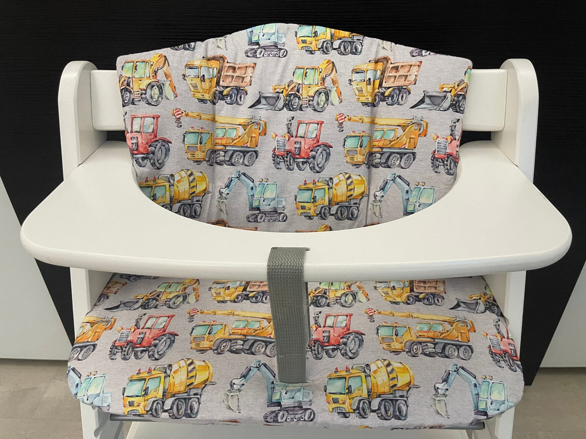 Sitzkissen Kissenset für Hauck Alpha, Tray, Beta Hochstuhl - Baufahrzeuge meliert Grau