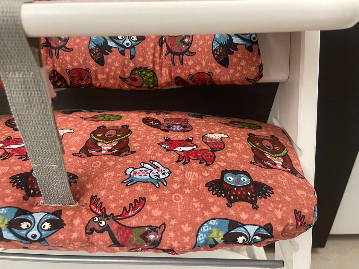 Sitzkissen Kissenset für Hauck Alpha, Tray, Beta Hochstuhl - Waldtiere rot/braun - 2 teiliges Set