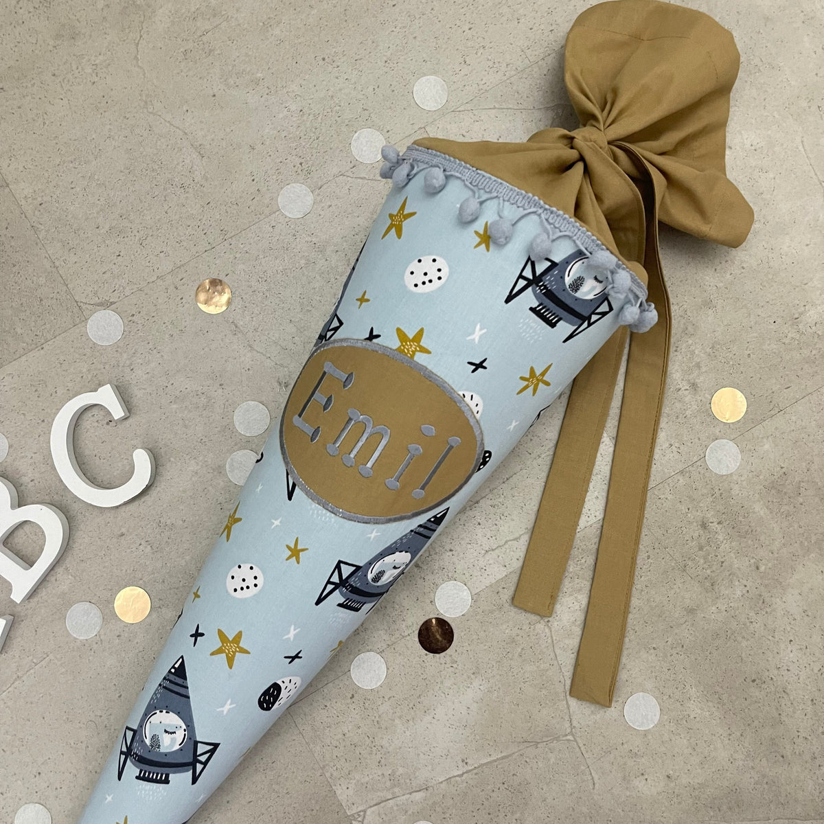 Schultüte Zuckertüte Einschulung Groß 70cm Handmade / Rakete mit Ovalem Kreis - Nur Schultüte
