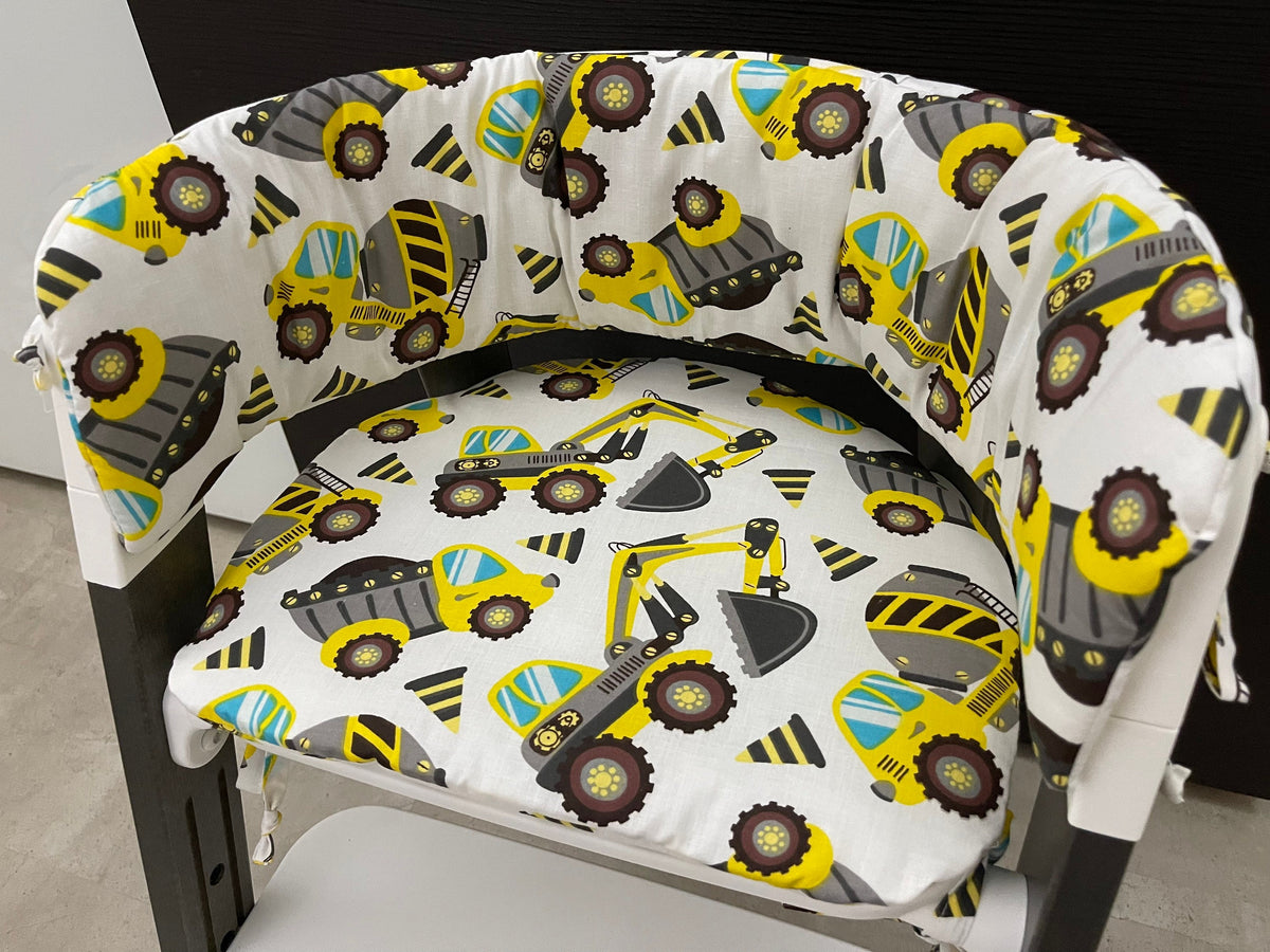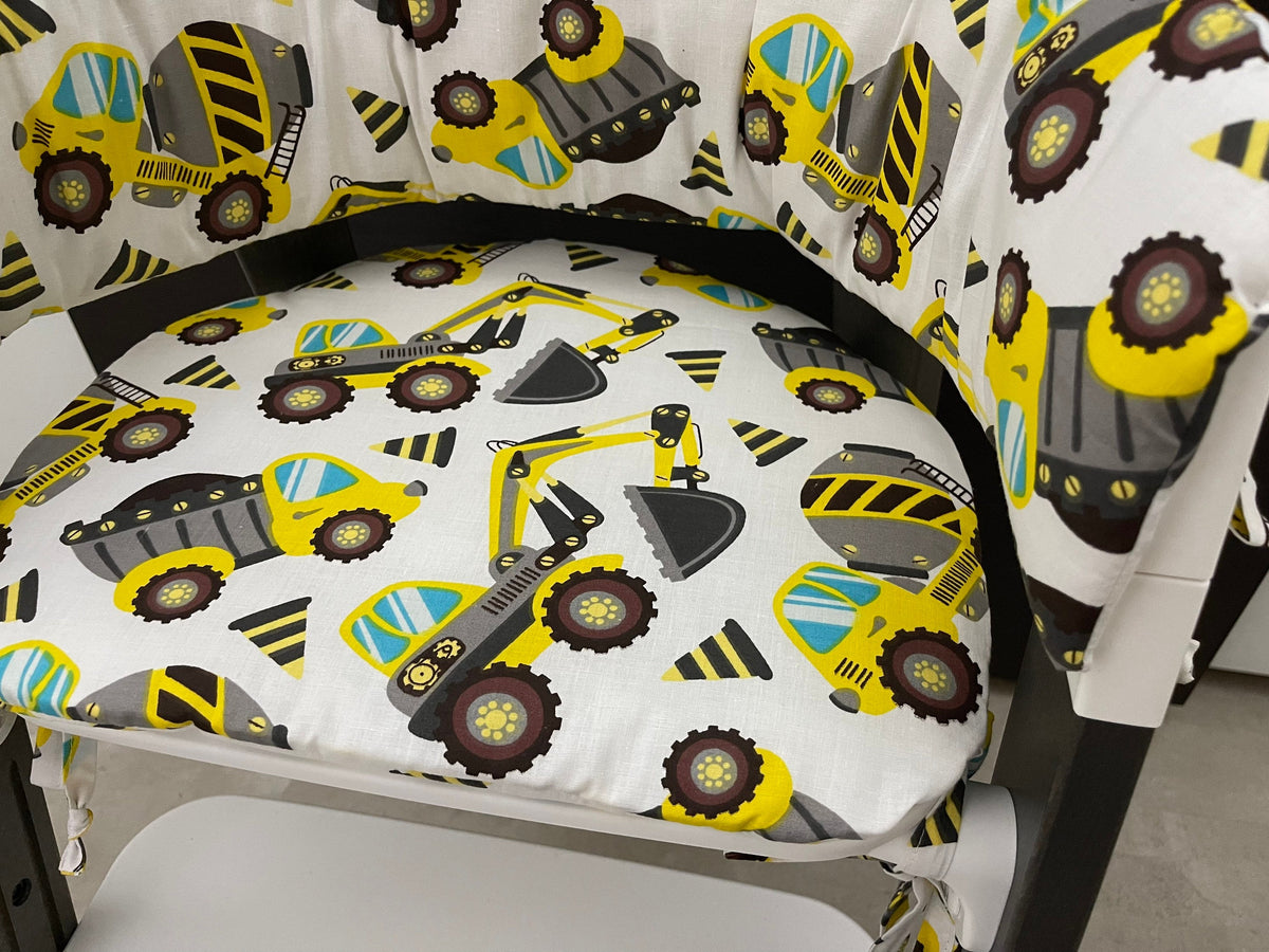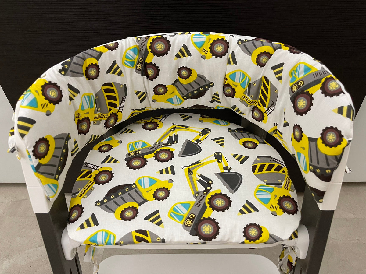 Sitzkissen Kissenset für Stokke Steps Hochstuhl - Baufahrzeuge - Zweiteiliges Set