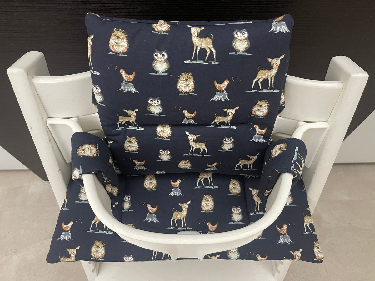 Tripp Trapp Sitzkissen Kissenset für Stokke Hochstuhl - Waldtiere Dunkelblau - Nur das Sitzkissen