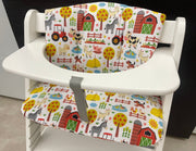 Sitzkissen Kissenset für Hauck Alpha, Tray, Beta Hochstuhl - Bauernhoftiere mit Traktoren und Scheune - Nur Kissen