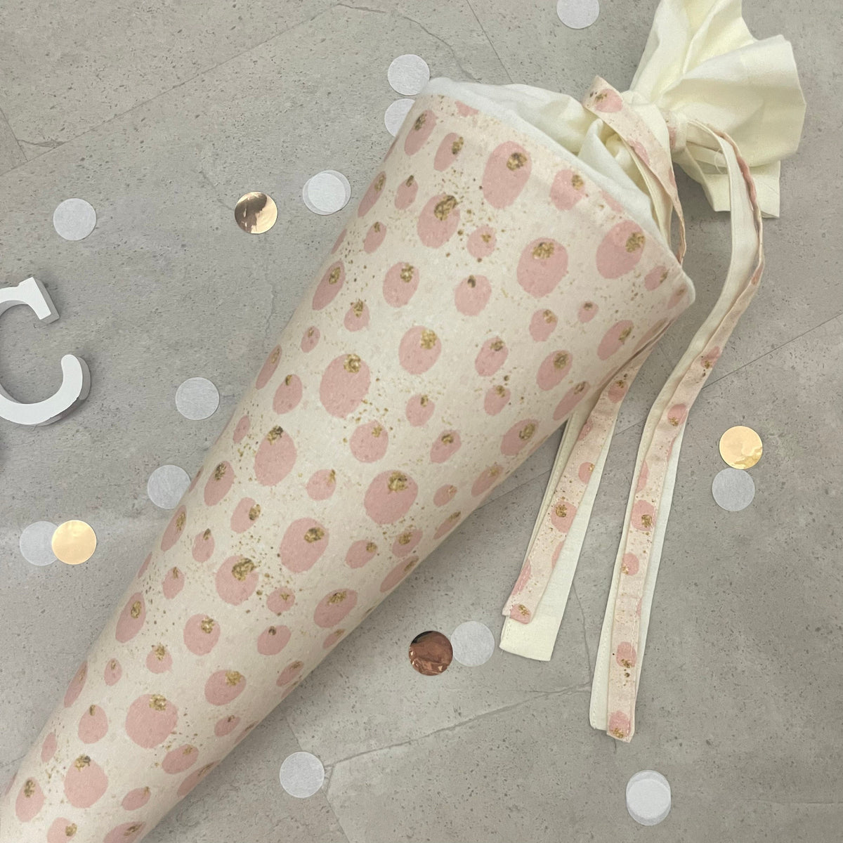 Schultüte Zuckertüte Einschulung Groß 70cm Handmade / Punkte mit Goldakzenten - Nur Schultüte