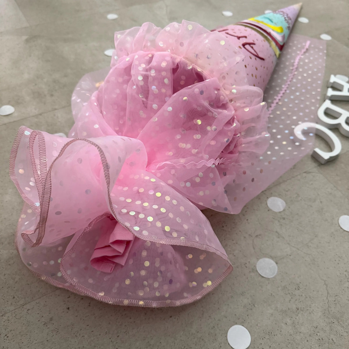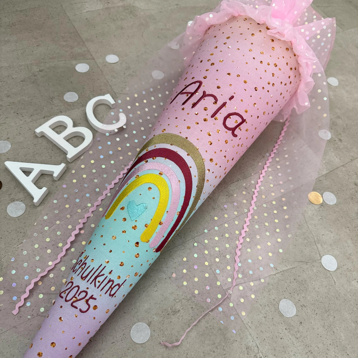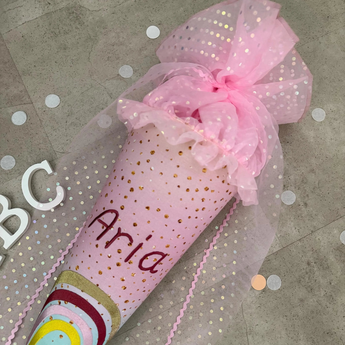 70cm Schultüte Zuckertüte Einschulung Groß Handmade - Regenbogen mit Applikation und Tüll - Nur Schultüte